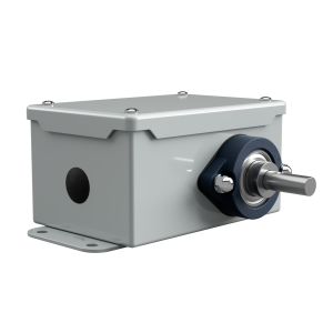 The standard housing is constructed from 16 gauge steel and is designed to NEMA 12 specifications. A stainless steel housing rated NEMA 4X is also available. The high quality analog proximity sensor, which has no movable parts, senses the position of a cam and gives an output (0-10V or 4-20mA) proportional to the angular position of the shaft. The flange mount bearings are maintenance free and very conservatively sized. The stainless steel shaft is faced, to aid in installation and mechanical connections. Limit switch models (NCD02) contains two high quality normally closed limit switches and two adjustable cams to set extreme travel limits. Wiring connections are made easy by a pre-wired terminal strip inside the enclosure. Quality components, precision and modular construction all combine to produce dependability, simplified installation and competitive pricing.